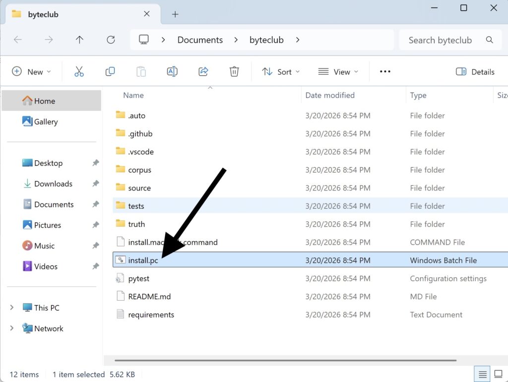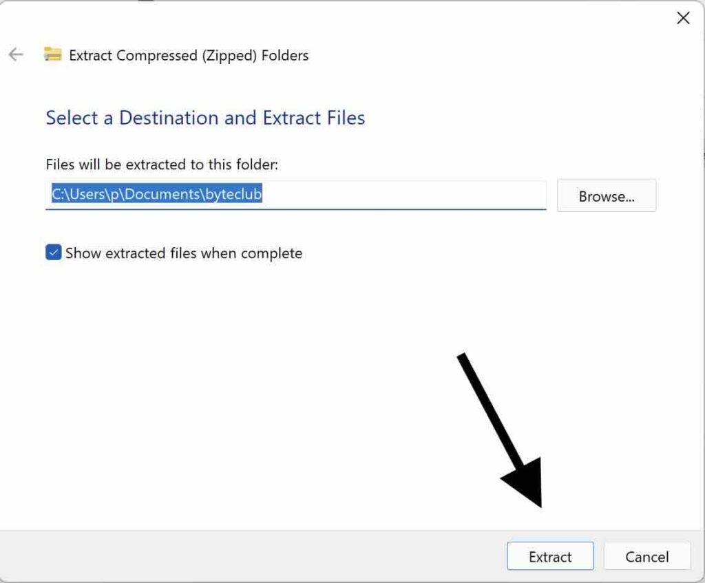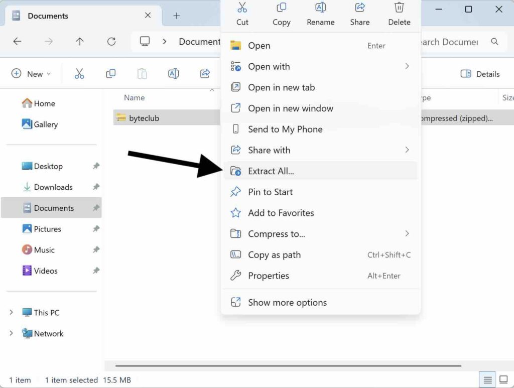 6) Select the file byteclub. Right-click on the selected row and select “Extract All…” from the context menu.